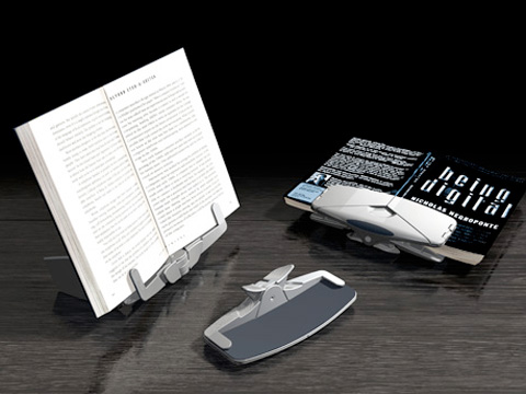 イギリス製の新機軸の書見台。やわらかいところにも自立します。すっきりとしたデザインが好評です。